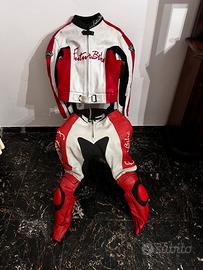 vendo tuta da moto futur bike taglia 50 un po rovinata usata due volte in pista e una in gara ha subito solo una caduta il prezzo è di 200 € trattabili .