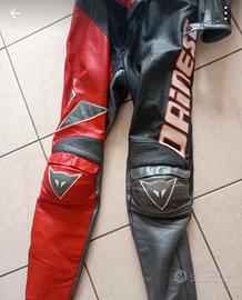 Tuta donna originale Dainese. Taglia 46. Usata pochissimo. Sempre pulita con i dovuti trattamenti per la pelle. Modello bi-color, un lato rosso e grigio , l'altro lato grigio e nero. Protezioni ginocchia, gomiti e spalle. Divisibile, con possibilità di usare solo la giacca o solo il pantalone.