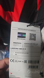 DAINESELAGUNA SECA 5 TUTA MOTO RACING INTERA IN PELLE COLORE:BLACK/WHITE/FLUO-RED TAGLIA:50 GARANZIAUFFICIALE DAINESE LagunaSeca 5 è l’ultima evoluzione della leggendaria tuta 1 pezzoDainese, costruita interamente in pellebovina premium pieno fiore,pronta per affrontare con la sicurezza di un campione qualsiasi sfidasulla pista. La sua struttura è progettata per permettere la massimalibertà di movimento in sella, l’ergonomia superiore porta lasicurezza a livelli assoluti: esclusivosistema Dainese Tri-Axial sulla schiena,inserti in pelle elastica in 3 direzioni che permettono una perfettamobilità garantendo lo stesso livello di resistenza all’abrasionedegli altri strati di pelle. Insertiin XF Arrow, materialeinnovativo Dainese che abbina grande elasticità e fit allaresistenza della pelle, per una mobilità superiore. Lasicurezza è garantita da protettori in materiale composito su gomitie ginocchia, protettorimorbidi Pro-Shape 2.0 suifianchi, e dall’esclusiva costruzione della spalla flottante conprotezioni composite e piastre in alluminio, sostituibili epersonalizzabili. Le placchesulle spalle in metallo,un segno distintivo e un brevetto esclusivo Dainese, permettono diassecondare lo scivolamento in caso di caduta, evitandol’innescamento di pericolosi rotolamenti. Una differenza essenzialerispetto ai materiali plastici, che si consumano più velocemente conl’abrasione, esercitando maggiore grip sull’asfalto. Ilrivoluzionario internoD-Tec Racing Core,facilmente staccabile e lavabile, garantisce un nuovo livellodi traspirazionee comfort, insiemealle perforazionilocalizzate nellezone più strategiche della tuta, che offrono ventilazione leanche durante le sessioni nelle giornate più calde. Questatuta è pronta per la competizione: il sistema RSS 3.0 presenta ampislider bimescola,saldamente ancorati alla tuta e sostituibili rapidamente.La predisposizioneper il waterbag kit nellagobba aerodinamica permette di montare il sistema idrico integrato,sviluppato per