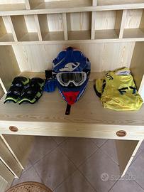Vendo tuta di motocross nuova utilizzata 2 volte la tuta ha il casco,ginocchiere,tuta e guanti ACERIB il casco costa 220€ le ginocchiere 45€la tuta 120€ e i guanti 32€ in tutto 400povo trattabili io nn faccio spedizioni e la tuta è per ragazzo di 13-14 e il casco è una taglia M