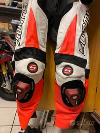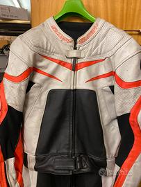 Tuta divisibile in pelle di bovino, usata per una sola stagione poi mai piu usata. Passata di cera protettiva ogni anno. Taglia 52