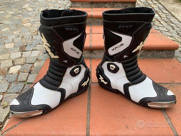 Completo di tuta motociclismo VIRCOS taglia 50, paraschiena e stivale XPD n° 45 indossati solo per due ore . Tutto nuovissimo!