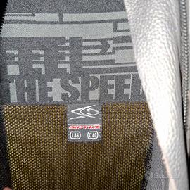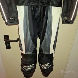 Vendo per inutilizzo tuta in pelle divisibile taglia 46 in ottime condizioni. L'unico difetto ha la fibia in plastica della giacca rotta visibile nell'ultima foto.
