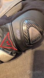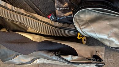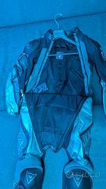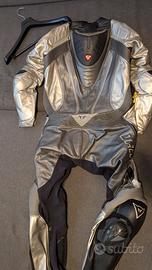 Tuta intera in pelle uomo/donna unisex usata pochissimo e mai su strada. Taglia 52 ma adatta ad altezza 175 circa. Doppia zip davanti. Inserti carbonio e metallo su spalle. Graffio su uno dei due (causa scellerata caduta in pit bike). Per me ancora stupenda ma non la uso più.