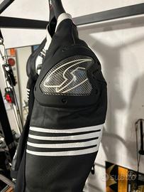 Tutta usata una stagione, ma ancora in buone condizioni. La tuta presenta qualche graffio fatto cadendo in allenamento su Pit bike, quindi a bassissime velocità i graffi non compromettono l’integrità e la funzionalità del prodotto