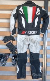 tuta minimoto per bambino taglia S completa di scarpe numero 31 e guanti taglia XS misura. Misura spalla/ caviglia 110 cm. Vendo per cambio taglia.