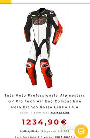Vendo Tuta Moto Alpinestars GP Pro Tech Air Bag Compatibile taglia 54 . Compatibile con il sistema air bag alpinestars , mai utilizzata con airbag. Prezzo del nuovo indicato nella seconda foto . La tuta è utilizzata e presenta alcuni segni di usura come in foto dovuti a una piccola scivolata , ma non presenta danni o rotture . Valuto permuta esclusivamente con tuta mtech di mio gradimento sempre taglia 54 . Spedizione disponibile e prezzo leggermente trattabile per conclusione immediata