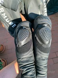 Pelle bovina 1,3–1,4 mm, protezioni CE su spalle/gomiti/ginocchia, slider originali inclusi, micro-perforazioni per ventilazione, fodera in mesh.