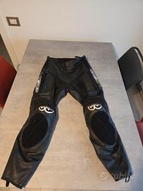 Tuta divisibile in pelle con inserti in tessuto. Giacca taglia 50 sfoderabile con tasche interne ed esterne Pantaloni taglia 48 con tasche esterne