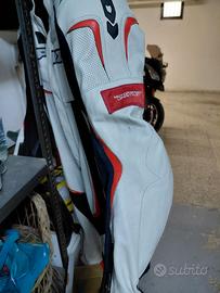 vendo tuta intera SPIDI tg 52. la tuta e in ottime condizioni con cerniere perfettamente funzionanti e saponette come nuove. solo per chi veramente interessato regalo nel prezzo un paio di stivali tg 43 marchio BIESSE. astenersi perditempo.PREZZO NON TRATTABILE
