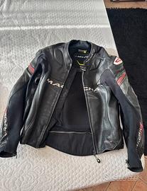 Vendo tuta divisibile da moto pista e strada: - Giacca Macna taglia S (155/170) con imbottitura traspirante, paraschiena integrato, slider spalle e slider gomiti. - Pantalone Dainese taglia 44 (160/170) con saponette dainese come nuove.