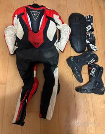 Tuta moto pista completo paraschiena Dainese guanti Alpinestars