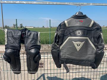 Tuta moto divisibile pelle Dainese TT 72 super sport taglia 50, completa di tutte le protezioni spalle, gomiti e schiena. Comprata personalmente nel 2005, usata davvero pochissimo, mai caduta o strisciata, conservata in armadio. Completa anche di imbottitura invernale removibile. Vendo perche ormai da anni non ho piu la moto.