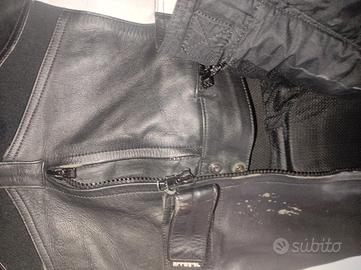 Vendo Tuta divisibile in pelle marca GF-pelle in perfette condizioni a parte una piccola abrasione sulla giacca come da foto.Completa di saponette ed altro paio di scorta.