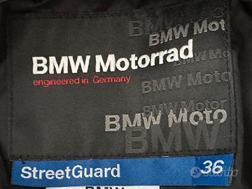 Tuta moto donna BMW Motorrad modello Streetguard colore nero, antivento, impermeabile, traspirante, da turismo specialistica per tutto l'anno. Pantalone donna taglia 19 (corrisponde a una taglia 38 con la lunghezza del cavallo di 74cm) con inserto pantaloni termico asportabile. Indossato da una persona alta 1,6 mt Giacca donna taglia 36 con giacca interna termica indossabile anche da sola. colletto rimovibile con cappuccio anti-intemperie integrato, antivento e impermeabile. protezioni su schiena, spalle, gomiti, fianchi e ginocchia(regolabili in altezza)