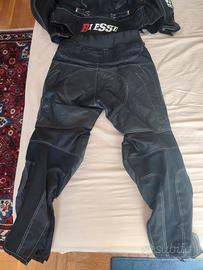Vendo tuta moto TAGLIA L in ottimo stato In foto si mostra separata ma volendo tramite un apposita cerniera si può unire pezzo sotto con pezzo sopra Utilizzata pochissime volte Marchio BIESSE