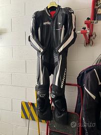 Vendo tuta Gimoto praticamente nuova, usata tre/quattro volte, saponette nuove, senza un graffio, fatta fare su misura quindi taglia per 1,75 altezza 75 kg. taglia 50/52 credo, pelle di canguro, protezione schiena integrata e protezioni composite V-POD by Vibram completa di sacco da trasporto. Patch amovibili, pagata € 1.500, prezzo intrattabile, già all'osso.