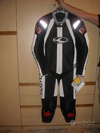 Vendo tuta intera NUOVA (ancora con il cartellino attaccato) in pelle per moto da strada, taglia 52, marca Clover (ottima azienda) con inserti in Kevlar nelle giunture , con saponette, gobba e interno lavabile.