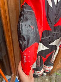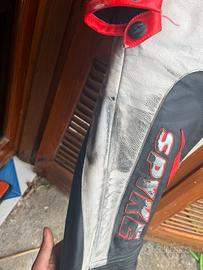 Tuta moto in pelle - taglia 52 - marca spyke. La tuta è sta acquistata poco tempo fa la vendo poiché ho sbagliato taglia, davvero molto comoda presenta i segni di una scivolata sul lato destro per il resto è nuova