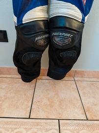 tuta moto racing prexport traforata , nessun danno da segnalare la tuta è ottima per il periodo estivo in quanto tutta traforata , pelle morbida di qualità e soffietti molto comodi per una postura guida confortevole tg 52