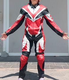 Tuta completa di tutte le protezioni interne necessarie per una guida sicura anche in pista, tra cui protezioni ginocchia, gomiti, spalle e schiena e strappi per applicare le saponette.