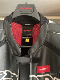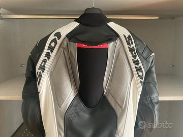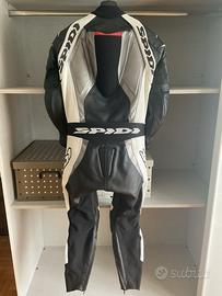 Vendo tuta in pelle intera Spidi Supersport taglia 50 (veste stretto), protezioni spalle, gomiti, fianchi, ginocchia, predisposta per paraschiena e pettorina (non compresi), tuta di alta qualità, usata due volte per due brevi giretti su strada, praticamente nuova
