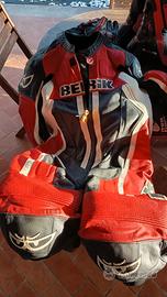 Tuta pelle 2 pz Berik Tg. 52 nera, rossa e bianca