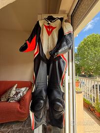 Tuta moto pelle intera estiva Dainese LAGUNA SECA 4 traforata Nero Bianco Rosso Fluo