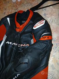 vendo tuta intera pelle Macna tg.56 (io sono 1,82 x 85kg) tenuta benissimo, usata solo un paio di volte in pista, ma ora non la uso più, qualche segno sulle saponette, cerniere ok, fodera interna asportabile e lavabile, prezzo leggermente trattabile. (Dainese,Alpinestars,Revit...)