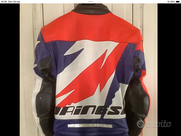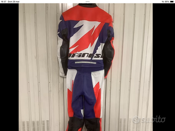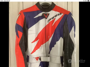 Vendo tuta moto in pelle da donna della Dainese in ottime condizioni usata una sola volta per un breve viaggio di una settimana. La tuta è priva di segni di tagli o di qualsiasi inperfezione possiamo dire come nuova. La taglia corrisponde a una tg. 42/44 per una persona alta 1,65/1,80. On un peso tra 45/60 kg. La tuta è divisibile tramite una cerniera per cui il giubbotto può essere utilizzato da solo . Le saponette sono applicate con adesivo a velcro per cui sostituibili. Per contatto telefonico 335.387489 Attilio.
