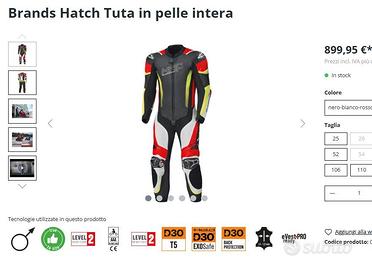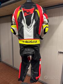 Tuta Moto da pista uomo usata una sola volta taglia 48/49 con protezioni compreso di paraschiena in D3O, vero affare! No graffi, no segni, no usura. Solo le saponette strisciate. Held è un marchio tedesco, qualità indiscutibile. La tuta è visibile anche sul sito Held per leggere le caratteristiche. Zona ritiro Trenno / San Siro morbida pelle bovina fodera interna a rete fodere amovibile tasca per documenti inserti in pelle traforata Zone in materiale speciale all' interno delle braccia, e polpacci smerigliatrice a gomito (art. 091920) saponette Predisposizione per eVest & eVest PRO ready imbottitura antiscivolo nella zona del ginocchio per un'ottimo grip Sicurezza certificato EN 17092, abbigliamento protettivo per motociclisti ulteriore protezione gomito e spalla tramite protezioni rigide Cursore a gomito incluso. Art. 052215.21.01 paraginocchia addizionali protezioni Held Exosafe D3O certificati EN 1621-1:2012 regolabili alle ginocchia, Level 2 Held Exosafe D3O paraschiena certificato EN 1621-2:2014 protezioni D3O® T5 EvoProX certificati EN 1621-1:2012 su spalle e gomiti, Level 2 Velcro per protezione opzionale tasca per protettore costa opzionale, art. 009316 sulle anche protezioni CE approvate cuciture di sicurezza