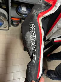 Vendo tuta in pelle traforata prexport, taglia 52, come da foto ha qulche segno dovuta a cadute in minimoto, ma in buone condizioni.