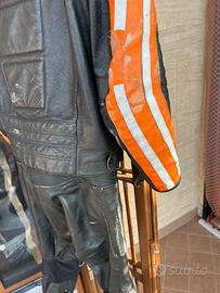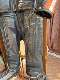 Tuta Suomy in pelle divisibile tg 52, gilet interno rimovibile. Usata con segni d’usura come da foto.