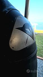 Causa inutilizzo vendo una tuta uomo Dainese 2 pezzi taglia 56, nera e bianca, con saponette ginocchia originali Dainese, Para spalle in alluminio, mancano due viti su 4 della spalla sx e una vite della spalla dx, la tuta è in buone condizioni