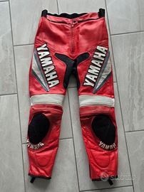 Vendo bellissimo completo in pelle per moto brandizzato Yamaha serie R, prodotto dalla Lookwell. Il completo è composto da giacca e pantalone tecnico, uniti da una comoda zip in vita per essere utilizzati come tuta intera o separatamente.