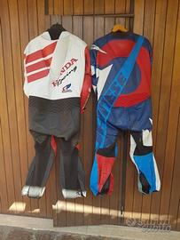 Vendo per inutilizzo due tute intere da moto taglia 54 di cui una Dainese Storm indossata con leggeri segni di uso sulle zone a contatto con la moto ma mai caduta o preso acqua, ed una Suomi Honda mai indossata, bellissima da vetrina, pelle primo fiore con aereazione,sempre stata in armadio al riparo dalla luce. Per la Dainese usata chiedo 450,00€, per la Suomi Honda 1000,00. Dato l'ingombro, sarebbe preferibile la consegna a mano. Non interessati astenersi