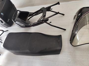 Vendo valige originali BMW rigide complete di staffe per il fissaggio. Sella originale con sotto telaio e codino originale con stemma ben conservato.
