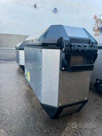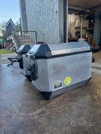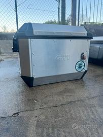 Valige in alluminio Givi alaska composto da 2 valige da 36l montano lo stesso nottolino quindi si aprono con 1 chiave I telai montano su ktm 890 adventure o simili ed hanno il kit di sgancio rapido Altre foto su richiesta a chi interrssato seriamente. Bauletto non piu disponibile