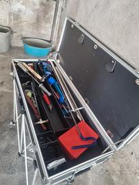 Vendo valigia portaattrezzi con ruote, insieme a cavalletto. Vendo ovviamente vuota.