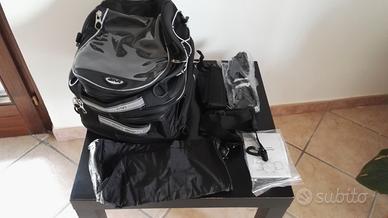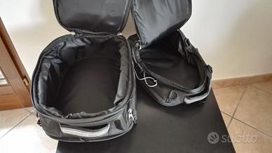 La borsa è composta da due parti trasportabili separatamente e nella parte superiore c'è una tasca per navigatore.