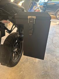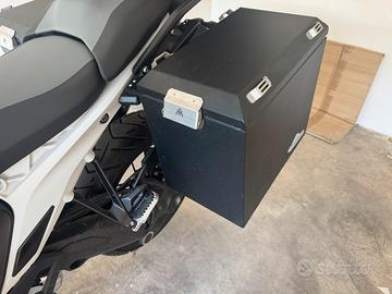 Valigie laterali in alluminio Koboldbike nuove montate solo per le foto: montaggio diretto sui predisposizione supporti originali senza telai. Koboldbike è un marchio italiano specializzato nella produzione di valigie laterali in alluminio per moto adventure e touring. Le sue soluzioni si distinguono per la compatibilità diretta con la predisposizione dei supporti per le valigie originali di numerosi modelli, tra cui BMW GS. Grazie a sistemi di fissaggio dedicati, non è necessario installare telai aggiuntivi: le valigie si agganciano rapidamente, garantendo stabilità, leggerezza ed estetica pulita. Realizzate in alluminio resistente, offrono impermeabilità.