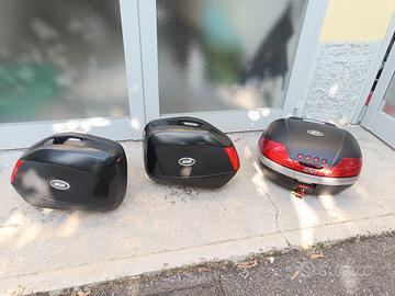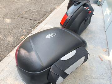 Tris di borse moto: valigie laterali GIVI V35 e bauletto V46 con morbido cuscino per la schiena del passeggero. Sono tenute molto bene.