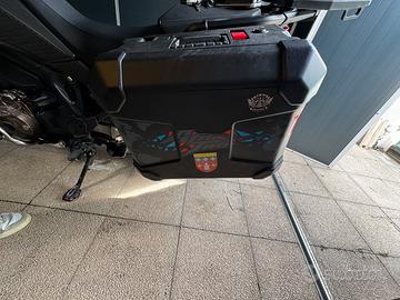 Vendo coppia di valigie originali Honda in abs montate di serie sulla Africa Twin Adventure Sports 2024. Le valigie hanno poco più di un anno di vita, le cambio per valigie in alluminio. La valigia sx ha una riparazione nella cerniera inferiore, mentre la valigia dx ha una leggera filatura sul bordo superiore. Sono state aggiunte delle chiusure di sicurezza in acciaio per i viaggi. Le valigie vengono fornite aperte e senza chiave, l'acquirente dovrà rimappare le serrature,€ 440 non trattabili.