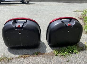 hanno ciascuna la propria piastra bauletto per essere montate centrali, ma le ho forate posteriormente per poter essere anche usate laterali.