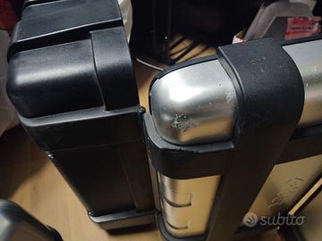 Vendo due valigie laterali GIVI Trekker 33 litri, alluminio-nero, usate, come da foto. Una -vedi ultima foto- presenta un evidente lieve danneggiamento. Ognuna delle valigie è dotata di propria chiave doppia.