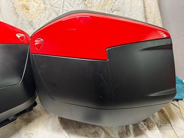 Borse rigide multistrada colore rosso originali ducati. Per 1200 dvt, 1260, 950 e v2/v2s. Dal 2015 al 2024. Compresi anche gommini per le staffe. Normali segni di utilizzo.