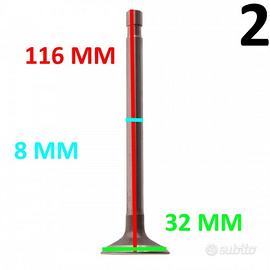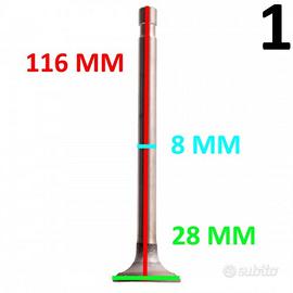 (R.21120) Vendo valvola testata motore nuova per Fiat 500 - F - L d'epoca , il prezzo si intende per singolo pezzo , per misure vedere foto , più modelli disponibili :- Numero 1 : valvola scarico , con lunghezza 116 larghezza 8 mm e larghezza base 28 mm , con codice Livia 01-5229 , 2 pezzi disponibili- Numero 2 : valvola aspirazione , con lunghezza 116 larghezza 8 mm e larghezza base 32 mm , con codice Livia 01-2853 , 4 pezzi disponibili