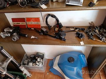 cupolino NTX come da foto euro 25, sella euro 20 , serbatoio con rubinetto euro 45 , sella per V35/50/65 custom in ottimo stato euro 70 , centralina Breva euro 100, bauletto posteriore con chiave e piastra di aggancio ( ha' le cerniere in plastica rotte da riparare con termoplastico ) tutto euro 30 , coppia piastre più pedane posteriori smontate da California 1100 euro 50 , cambio V35/50 euro 140 , portapacchi piccolo euro 20, ecc.