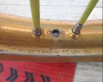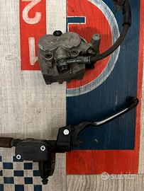 Pinza freno + pompa freno + tubo freno Nissin smontato da Suzuki RM 125 anno 2000 Prezzo compreso di spedizione per tutti e tre le parti 170 euro Compatibile con Honda Yamaha Kawasaki Prezzo singola parte: -Pinza freno Nissin prezzo 90 euro -Pompa freno Nissin prezzo 70 euro -Tubo freno 25 euro -Forcelle Suzuki RM diametro 45 prezzo 200 euro presenta segni di usura come visibile in foto -Forcella lato disco non presenta segni prezzo 120 euro -Forcella lato destro presenta usura come da foto prezzo 80 euro ----------------------------------------------------------------------------------------------- Piastre di sterzo smontate da Suzuki RM 125 anno 2000 Monta su forcelle da 45 -Diametro fori forcelle piastra superiore 54 mm -Diametro fori forcelle piasta inferiore 57,1 mm prezzo in coppia 50 euro prezzo singolo pezzo 35 euro ------------------------------------------------------------------------------------------------ Asse ruota anteriore 50 euro Diametro lato cuscinetti 17 mm Diametro lato ruota 22mm -Cerchio anteriore Suzuki Rm 125 250 RMZ 250 450 varie annate 120€ completo di disco freno mozzo raggi e copriranno possiamo fornirlo anche di colore lucido eliminando il trattamento di anodizzazione al costo di euro 30 in più Siamo una concessionaria specializzata nella vendita di moto e accessori sia nuovi che usati, siamo convenzionati con corriere SDA, accertatevi della compatibilità perchè non è possibille effettuare il reso se l articolo non è compatibile con il vostro veicolo. Sul nostro sito Rinaldo Motors troverete numerosi annunci di ricambi ed accessori per la vostra moto per tutto il resto contattateci al 3713728295