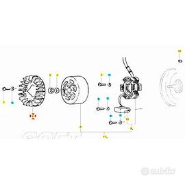 (R.15038) Vendo ventola del rotore generatore nuova con tre fori di fissaggio per scooter Piaggio tipo Zip 50 cc dal 1992 - Free 50 cc dal 1992 - Sfera 50 cc dal 1991 - SKR City 80 cc dal 1999 - Gilera Easy Moving 50 cc dal 1995 - Storm 50 cc dal 1994 - Typhoon 50 cc dal 1994 marca Ariete con codice 10966 e simile a codice Piaggio 289338 - 286533 - 480156 , per applicazioni e spaccato vedere foto